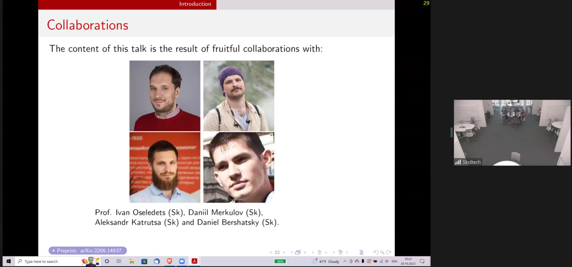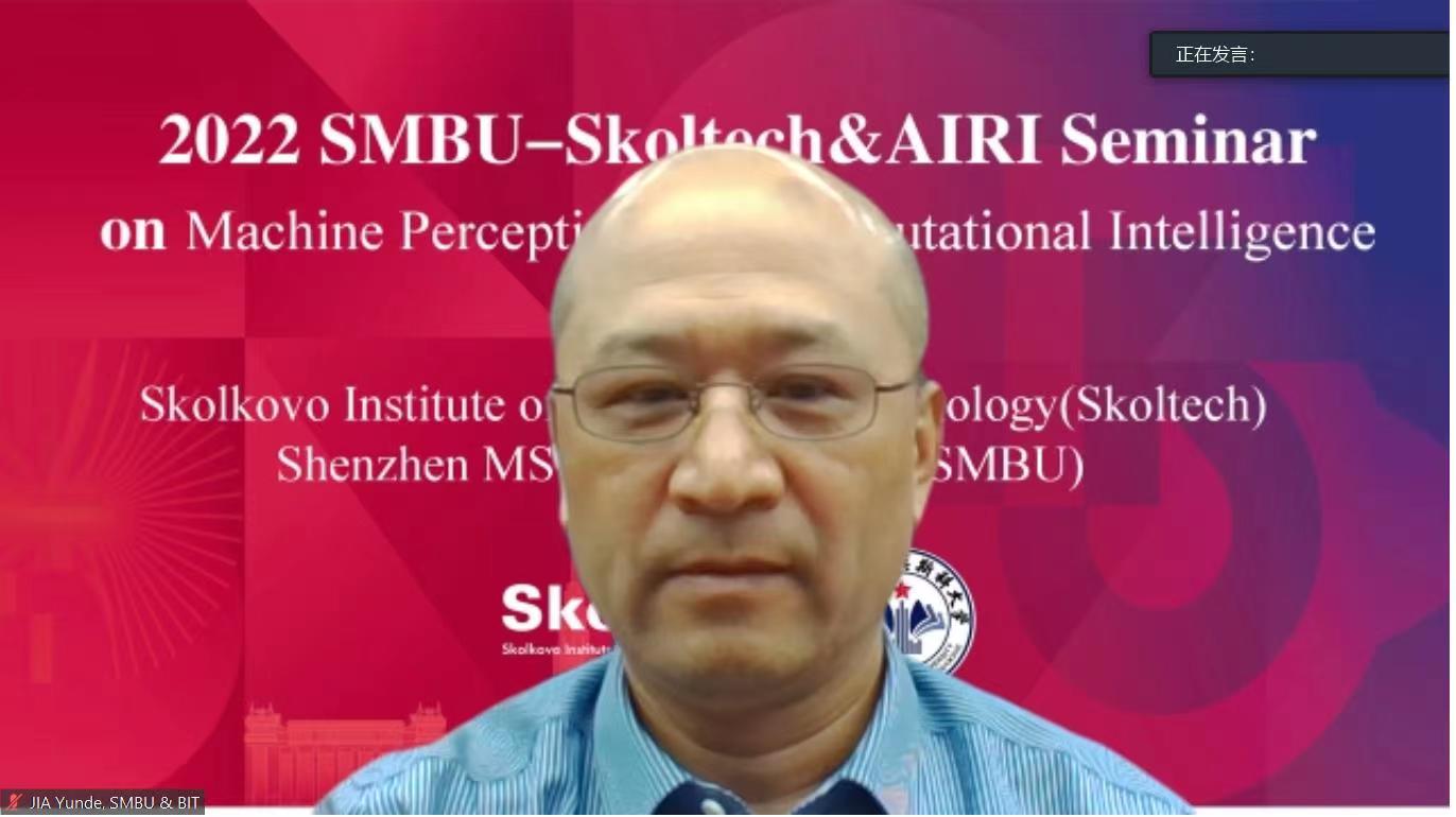 2022年10月28日,深北莫-斯科爾理工機器感知與計算智能研討會在線上線下同時舉行。此研討會是由中國深圳北理莫斯科大學(Shenzhen MSU-BIT University, SMBU)和俄羅斯斯科爾科沃理工學院(Skolkovo Institute of Science and Technology, Skoltech)共同舉辦的雙邊學術論壇,賈云得教授和Ivan Oseledets教授共同擔任研討會主席,裴明濤教授、Aleksandr Mikhalev 博士、吳心筱教授、Dmitry Dylov 教授擔任分組報告主席。本次研討會的主題是機器感知與智能計算,共邀請了12位來自俄羅斯和中國的學者做學術報告。他們的精彩報告給參會人員帶來了一場高端的學術盛宴。本次研討會通過線下線上相結合的模式舉辦,共有120多位學者和師生通過現場出席或觀看視頻直播的方式參加。