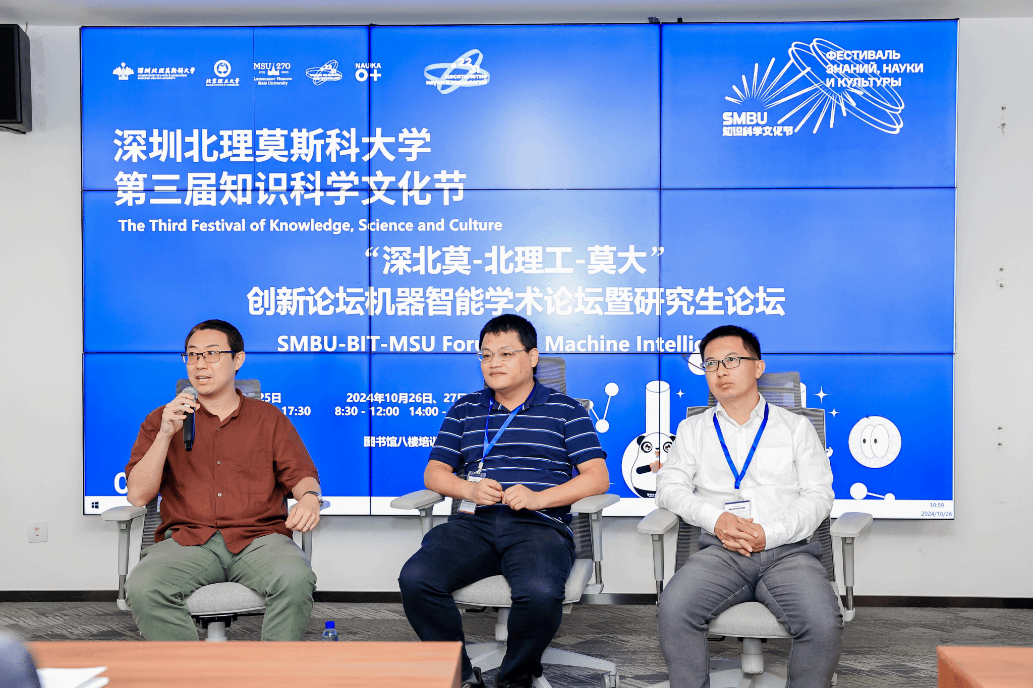 2024年10月25日,第三屆MSU-BIT-SMBU創(chuàng)新科技青年論壇在深圳北理莫斯科大學(xué)圖書館報告廳開幕。論壇旨在加強(qiáng)莫斯科國立大學(xué)(MSU)、北京理工大學(xué)(BIT)和深圳北理莫斯科大學(xué)(SMBU)青年科學(xué)家學(xué)術(shù)交流和合作,激發(fā)青年學(xué)者的創(chuàng)新創(chuàng)業(yè)熱情,探討人工智能及其應(yīng)用的最新進(jìn)展。論壇由深圳北理莫斯科大學(xué)工程系和廣東省智能感知與計算重點(diǎn)實(shí)驗(yàn)室共同主辦,論壇組織委員會主席由北京理工大學(xué)計算機(jī)學(xué)院吳心筱教授和武玉偉長聘副教授擔(dān)任。