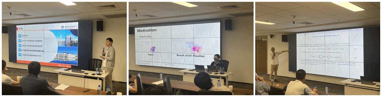 潘利源教授帶來了面向多種數據形式的場景理解和圖像復原技術研究。潘老師首先介紹了視覺傳感器在日常生活中的應用,并由此引入了事件相機和彩色相機的不同之處以及其在動態場景中的優良特性。潘老師從光學傳感器的理論開始,由淺入深介紹了事件相機的工作原理和特性以及其在三維信息挖掘、暗光圖像處理等方面的應用。然后介紹了利用事件相機的動態特性在圖像復原上面的前沿研究工作。最后和同學們討論了圖像模糊在三維視覺中的潛在應用。