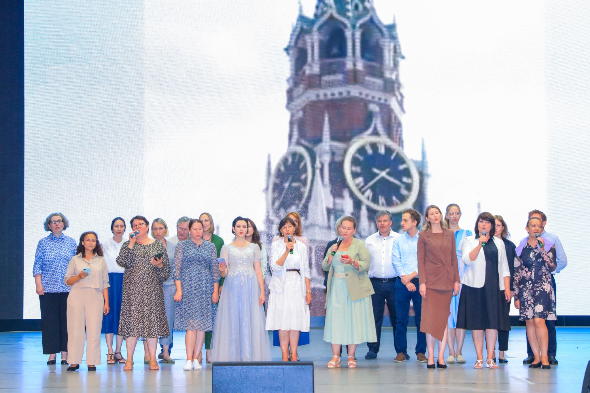 教師合唱《我親愛的首都》為本次晚會(huì)畫上了圓滿句號(hào)。承擔(dān)本次“俄語強(qiáng)化月”培訓(xùn)任務(wù)的24位俄羅斯老師現(xiàn)場集體獻(xiàn)唱,歌聲鏗鏘有力,震撼人心,帶領(lǐng)大家走進(jìn)了繁華美麗的莫斯科,讓人們感受莫斯科迷人的魅力以及俄羅斯人民對首都的喜愛。