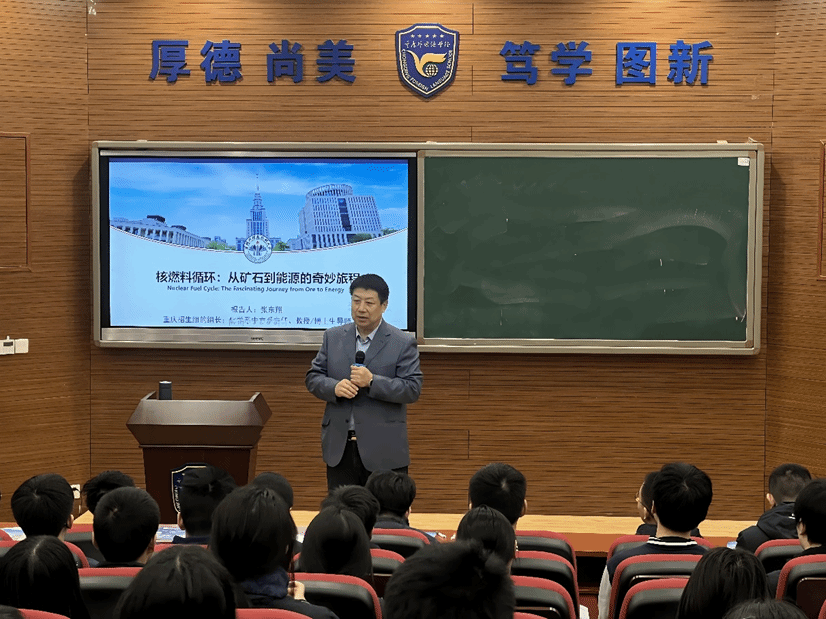 11 月 17 日晚,招生組來到重慶實驗外國語學(xué)校。張東翔教授帶來了一場題為《核燃料循環(huán):從礦石到能源的奇妙旅程》的科普報告,為 60 名學(xué)生開啟了一場知識的盛宴。在報告中,張教授首先從核能的基本概念入手,深入淺出地講解了原子內(nèi)部蘊(yùn)藏的能量如何轉(zhuǎn)化為電能或其他形式能源,讓同學(xué)們對核能有了初步的認(rèn)識。接著,詳細(xì)闡述了核燃料循環(huán)的過程,包括從鈾礦的開采開始,介紹了鈾礦的種類及分布情況,使同學(xué)們了解到鈾礦資源的來之不易。隨后,講解了如何通過復(fù)雜的化學(xué)冶煉等過程從鈾礦中提取鈾,并將其轉(zhuǎn)化為可用于核電站的燃料組件,其中涉及到的化學(xué)和物理變化讓同學(xué)們感受到了科學(xué)的奇妙。在講解乏燃料處理環(huán)節(jié)時,張教授強(qiáng)調(diào)了其重要性和復(fù)雜性,以及目前國際上在這方面所面臨的挑戰(zhàn)和采取的應(yīng)對措施,引發(fā)了同學(xué)們對核能源可持續(xù)發(fā)展的深入思考。整個報告過程中,張教授運(yùn)用生動的案例和形象的比喻,將復(fù)雜的核燃料循環(huán)知識講解得通俗易懂。同學(xué)們被深深吸引,積極提問,問題涵蓋了核輻射安全、新型核燃料研發(fā)、核能在未來能源格局中的地位等多個方面,張教授一一耐心解答,現(xiàn)場氣氛熱烈非凡。在接下來的宣講會上,張教授詳細(xì)介紹了學(xué)校的發(fā)展歷程、學(xué)科專業(yè)設(shè)置、師資隊伍建設(shè)、人才培養(yǎng)模式以及國際交流合作等方面的情況,深入淺出地闡述了學(xué)校的教育理念與優(yōu)勢,激發(fā)了學(xué)生們對深北莫的濃厚興趣與向往。宣講會結(jié)束后,張東翔教授與學(xué)校黨委書記肖艷進(jìn)行了深入交流,并成功簽訂生源基地協(xié)議,授予優(yōu)秀生源基地牌匾,為兩校未來的合作奠定了堅實基礎(chǔ)。
