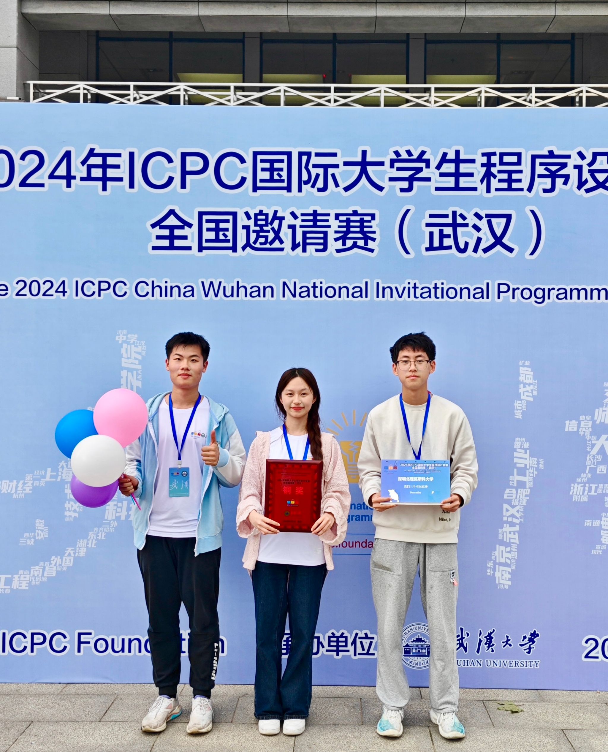 近日,在ICPC武漢邀請賽中,由2023級經濟系金融科技專業趙欣語、數學與應用數學專業王司晨、電子與計算機工程專業楊熠鑫、組成的隊伍獲得銅獎。