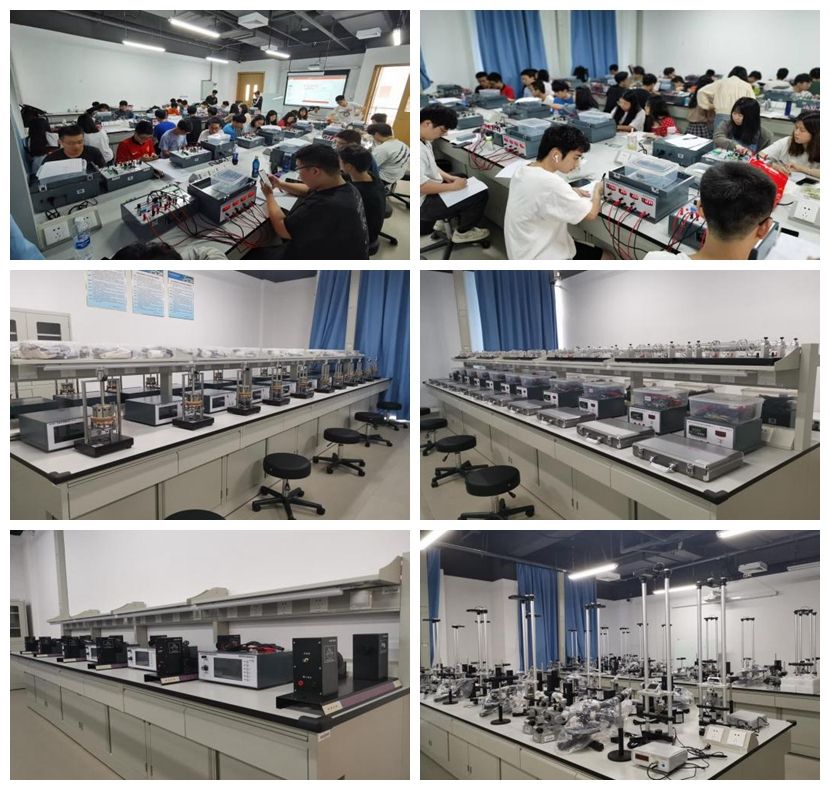 大學物理教學實驗室設于2號實驗樓2層(9間),共計面積728㎡,配備44個實驗位置/間。涵蓋熱學、電磁學、力學、電學、聲學、光學、近代物理及綜合創(chuàng)新實驗室。教室均配備投影、白板。考場監(jiān)控系統(tǒng)等智能教學設備。