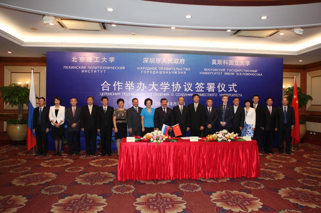在中俄兩國元首習近平主席和普京總統見證下,中俄兩國教育主管部門簽訂諒解備忘錄,支持莫斯科大學與北京理工大學在深圳合作舉辦大學。