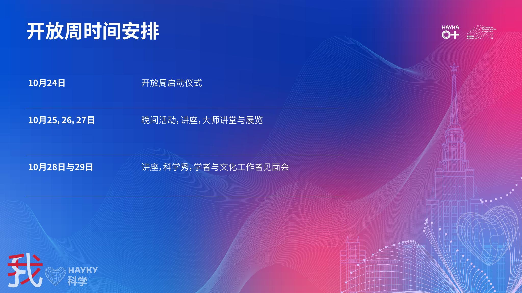 “NAUKA 0+(科學無界)”——全俄科學節由俄羅斯教育科學部主辦、莫斯科市政府和莫斯科大學協辦,2006年在莫斯科大學舉辦第一屆,至今已擴至全俄范圍。