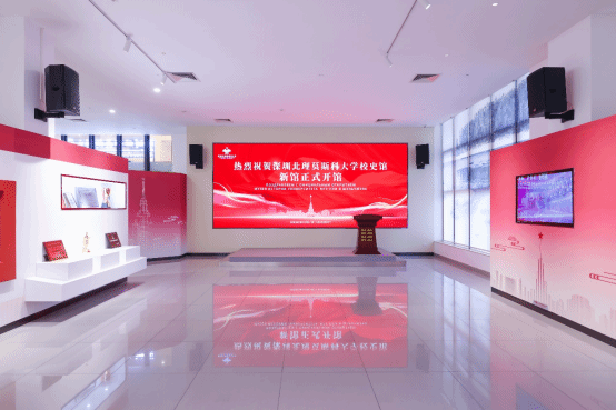 為校立史,館藏天地,弦歌不輟,砥礪前行。深圳北理莫斯科大學校史館新館位于主樓一層西側,展陳面積約750平方米,以學校發展和學生成長為故事主線,劃分“學校概況”“學校內涵”“院系成果”“生源學校”“多方合力”“美好未來”六大板塊。新館在聲光電及數字多媒體應用上全面提升,采用滑軌屏、推拉展示柜 、觸控查詢屏等多種交互模式,生動展現學校發展歷程以及在教學、科研、育人、服務社會等方面取得的發展成就,集校史展示、會客洽談、推廣宣傳等多項功能,旨在打造成為深圳高校中外合作辦學優秀展示窗口以及中俄人文交流成果的博物館和榮譽室。校史館的順利落成不僅為深北莫人構筑了一處精神文明“新高地”,也將成為深北莫校園的一處文化“新坐標”。