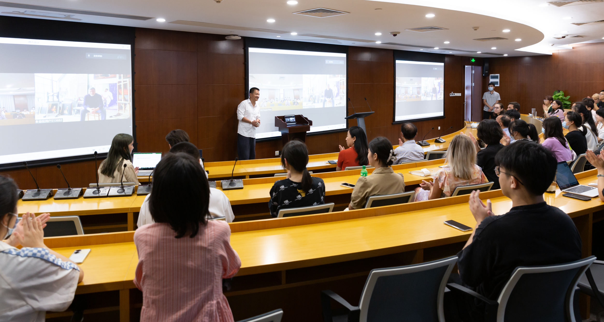 在場師生聆聽了阿勒申·庫爾巴諾夫關(guān)于作品的故事,欣賞了畫家的新作,了解了藝術(shù)家創(chuàng)作的心路歷程。講座設(shè)有提問環(huán)節(jié),阿勒申·庫爾巴諾夫回答了在場師生提問。