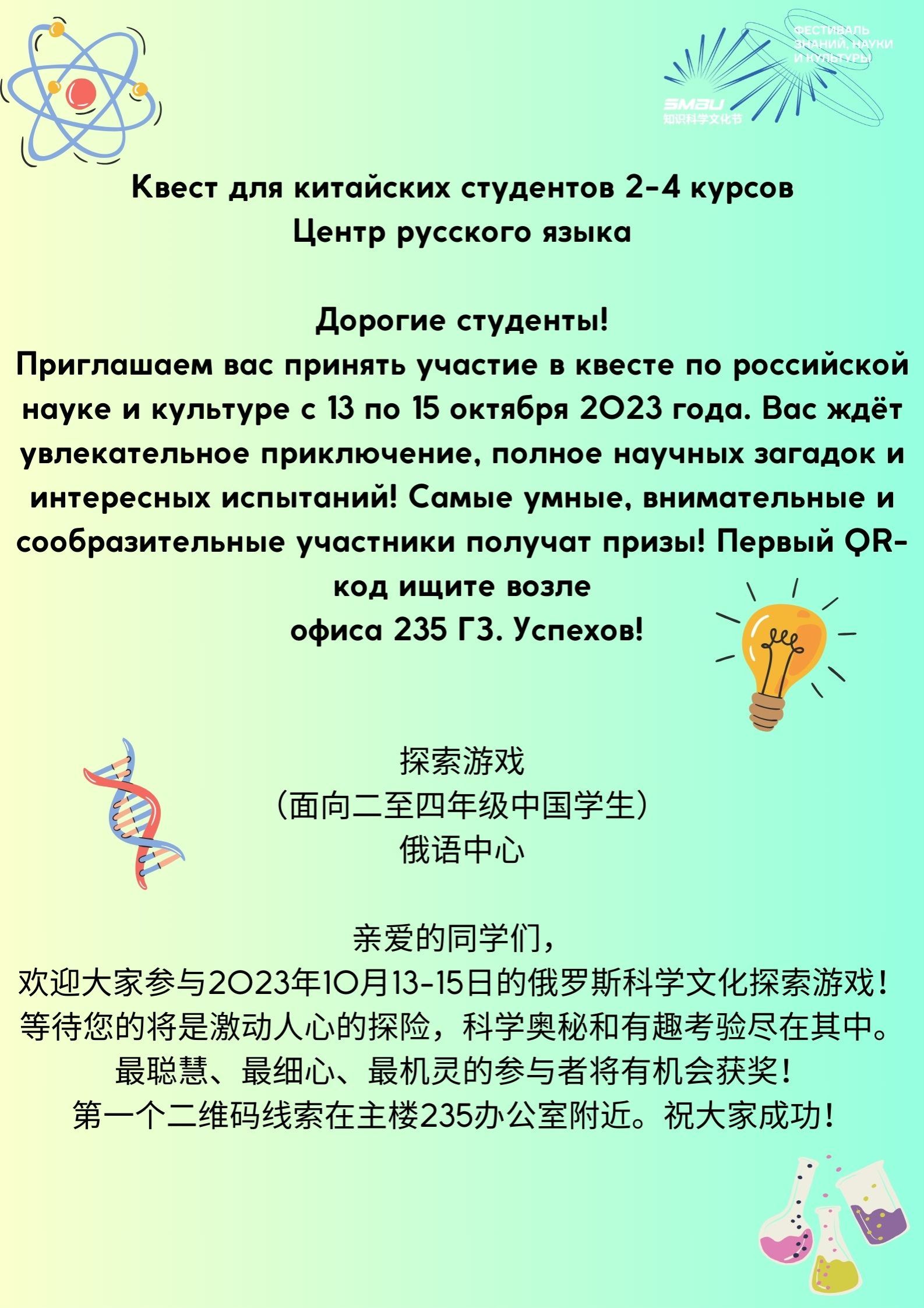 活動(dòng)名稱:俄羅斯科學(xué)與文化探索游戲活動(dòng)時(shí)間:10月13日 至 10月15日